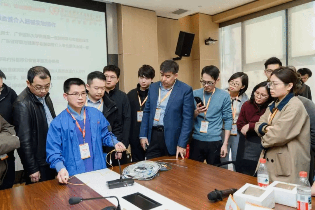12月30日,在手术观摩环节,学员们走进介入手术室,通过高清实时直播,全程观摩了洪城主任团队开展的9台介入手术。其中,包括2台肺动脉支架植入术、1台肺静脉支架植入术以及3台肺动脉球囊扩张术、3台右心导管检查术。术后效果显著,患者相关临床症状均得到显著改善,手术安全性与有效性得到了充分验证。术中,洪城及其团队伍晓锋主任边操作边讲解,将手术指征判断、器械选择策略、术中风险防控等关键要点倾囊相授,让学员直观感受FM介入治疗的核心流程与关键技巧。