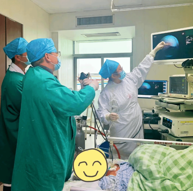 为确保手术万无一失,团队提前制定了详尽的手术预案与应急保障方案。手术由刘仕欣副主任医师领衔,董焕远主治医师、气管镜专科护士何韵平护师密切配合,组建了经验丰富的诊疗团队。