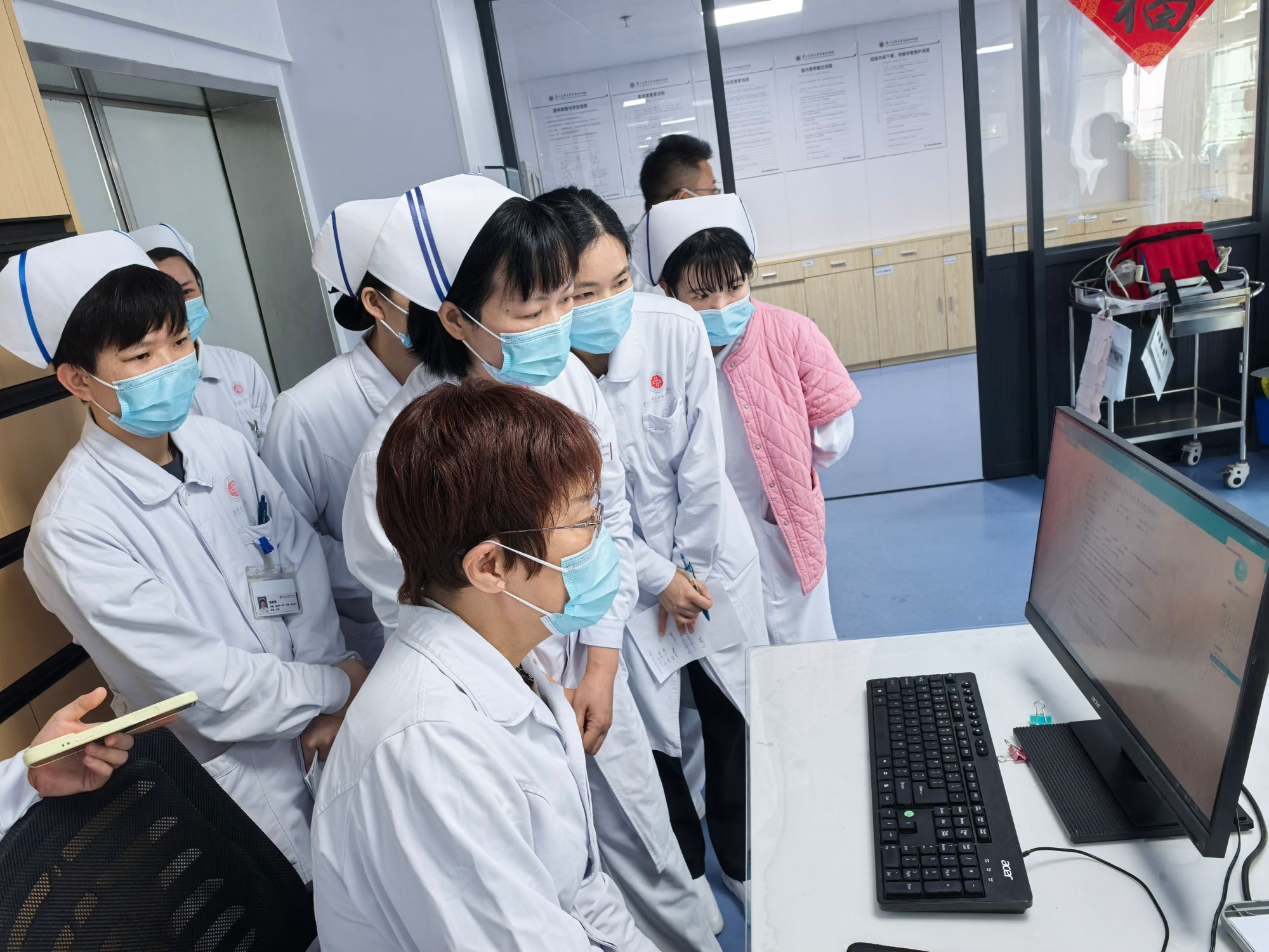 汇报结束后,纪玉桂主任深入神经内一科病房开展现场指导,通过实地查房、查阅文书、现场提问等方式,对护理操作的规范性进行了细致检查。在核心的“鼻肠管盲插置入技术”考核中,纪玉桂主任从评估细节到固定技巧进行了手把手的纠偏与指导。她重点剖析了堵管率、非计划性拔管率、误吸发生率及皮肤问题发生率四项敏感指标,强调数据背后折射的是患者安全与护理精细化水平,并为科室梳理出一套从数据收集到持续改进的闭环管理思路。专家对评审过程中发现的问题进行反馈与指导,同时对工作中的亮点给予肯定。