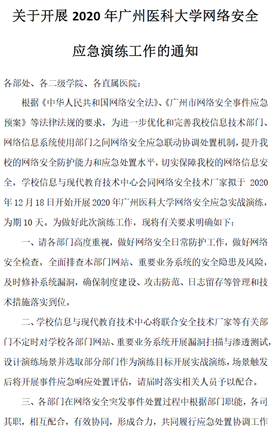 附件 : 关于开展2020年Beat365中文官方网站网络安全应急演练工作的通知.pdf