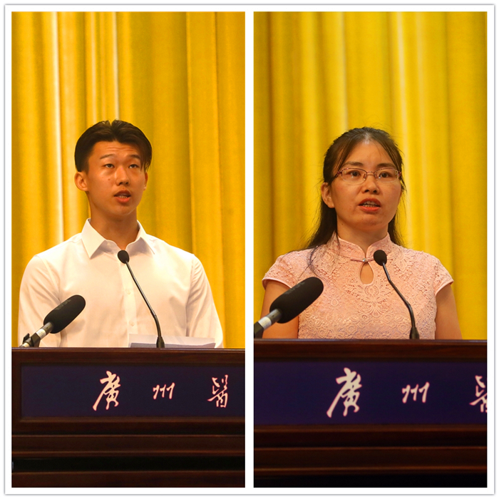 第五临床学院康复医学专业的黎泽均同学代表新生发言。他表示,自己的从医梦想源自钟南山院士,以及广医人在抗击新冠疫情中的感人事迹。他认为,新一代广医人要传承和弘扬前辈铸就的优秀文化传统,在专业知识上拥有扎实过硬本领,学做人、学做事、学立身、学处世。